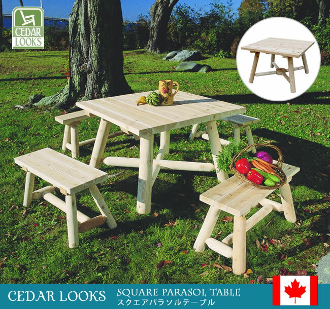 Cedar Looks スクエアパラソルテーブル【送料無料 天然木製 アウトドア ガーデンファニチャー ホワイトシダー 米杉 ログファニチャー セット 屋外 庭 園芸 エクステリア】