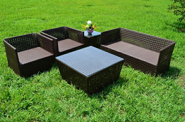 【6/4(20時から)10%OFF!】≪大型商品≫ガーデンファニチャー ラタン調 テーブル サイドテーブル ソファ おしゃれ テラス用 庭5点セット set368 屋外家具 バルコニー 組立不要 送料無料