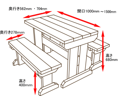 屋外用テーブル◇国産杉幅1500mm×奥行562mm×高さ680mm[受注生産] 【特大商品】