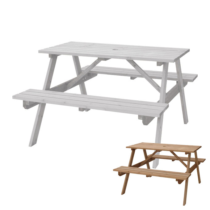 テーブル&ベンチ アウトドア 天然木 ブラウン 4人掛け [91234-br 91234-wh]【 ガーデンファニチャー ガーデンテーブル ガーデンセット ガーデンチェア ガーデン家具 屋外 木製 】