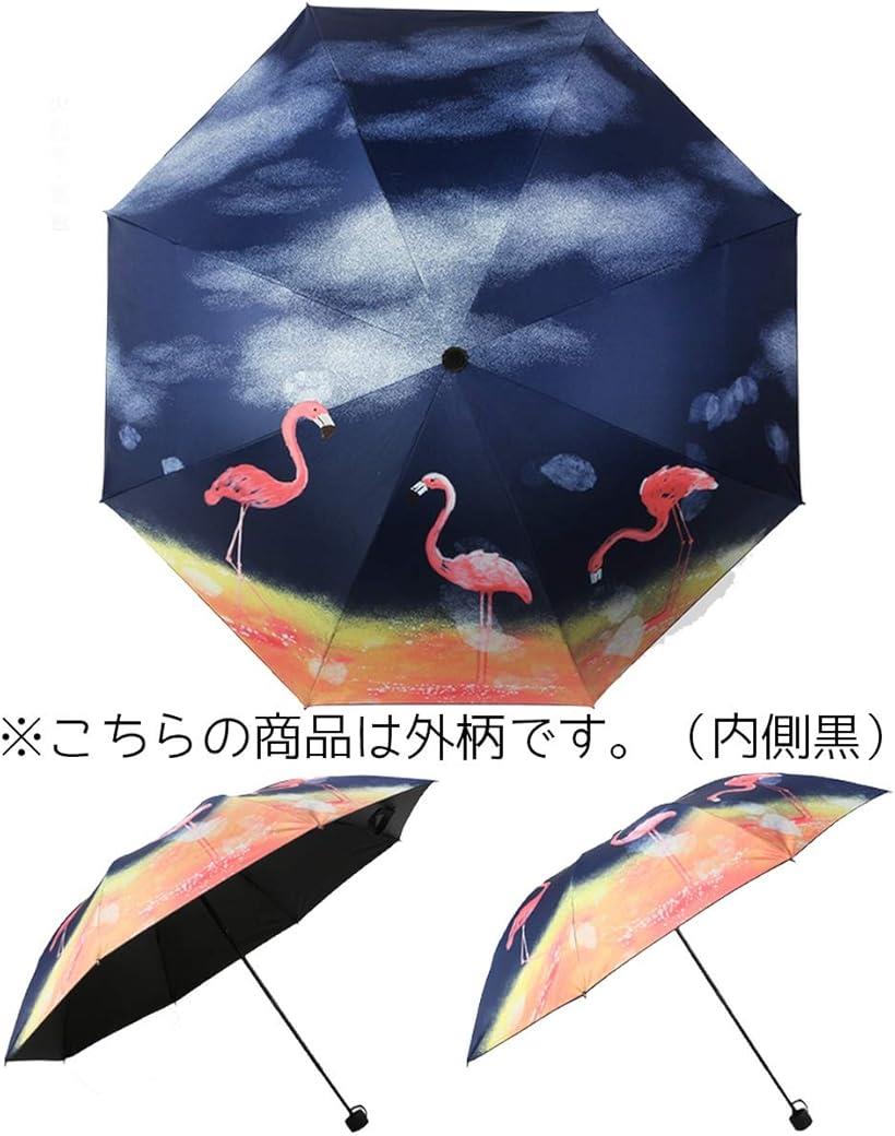 日傘 折りたたみ傘 UVカット レディース 100% 完全遮光 花柄 晴雨兼用 紫外線カット 遮熱 大きい 100cm フラミンゴ 外柄(フラミンゴ(外柄))